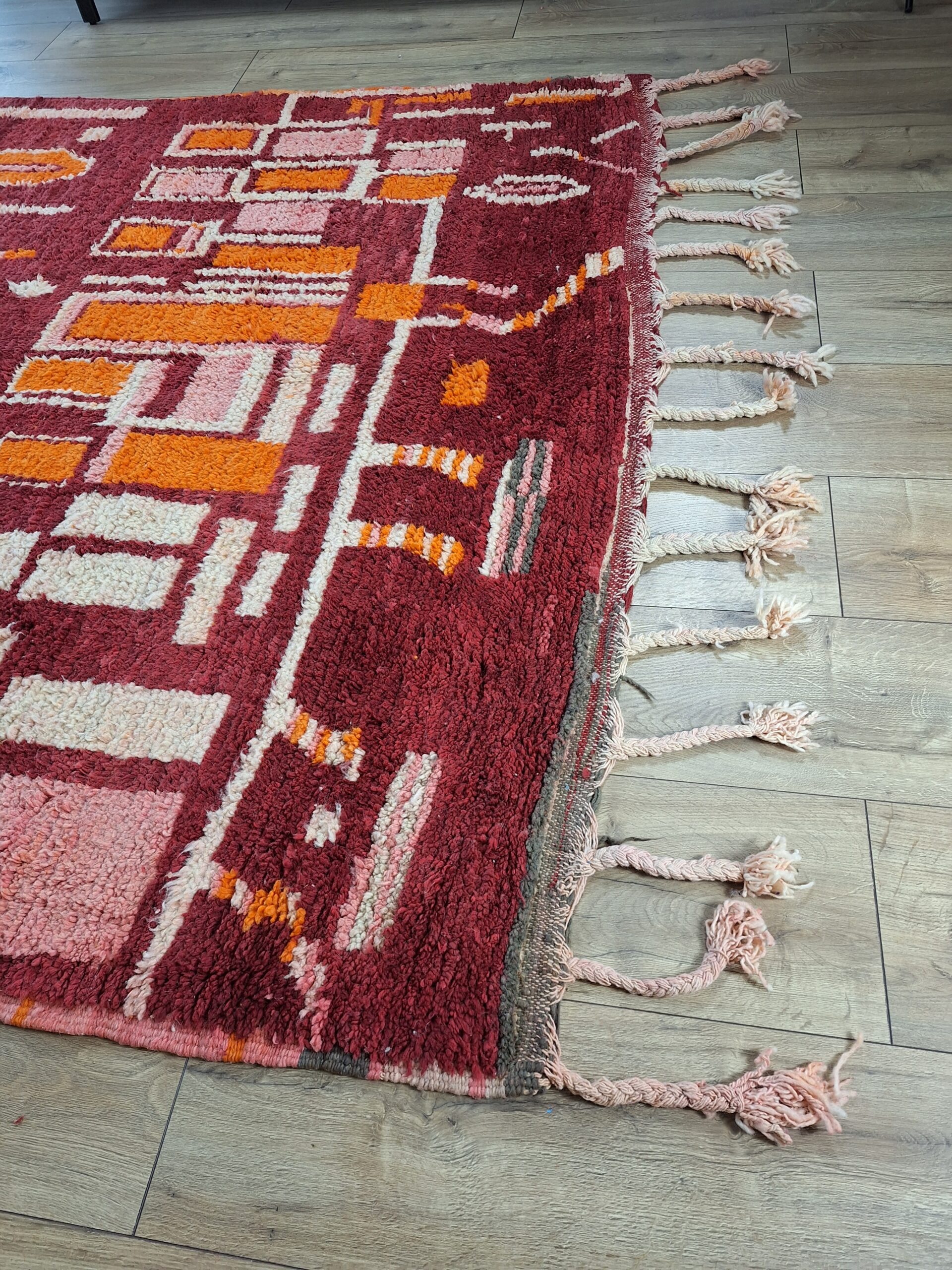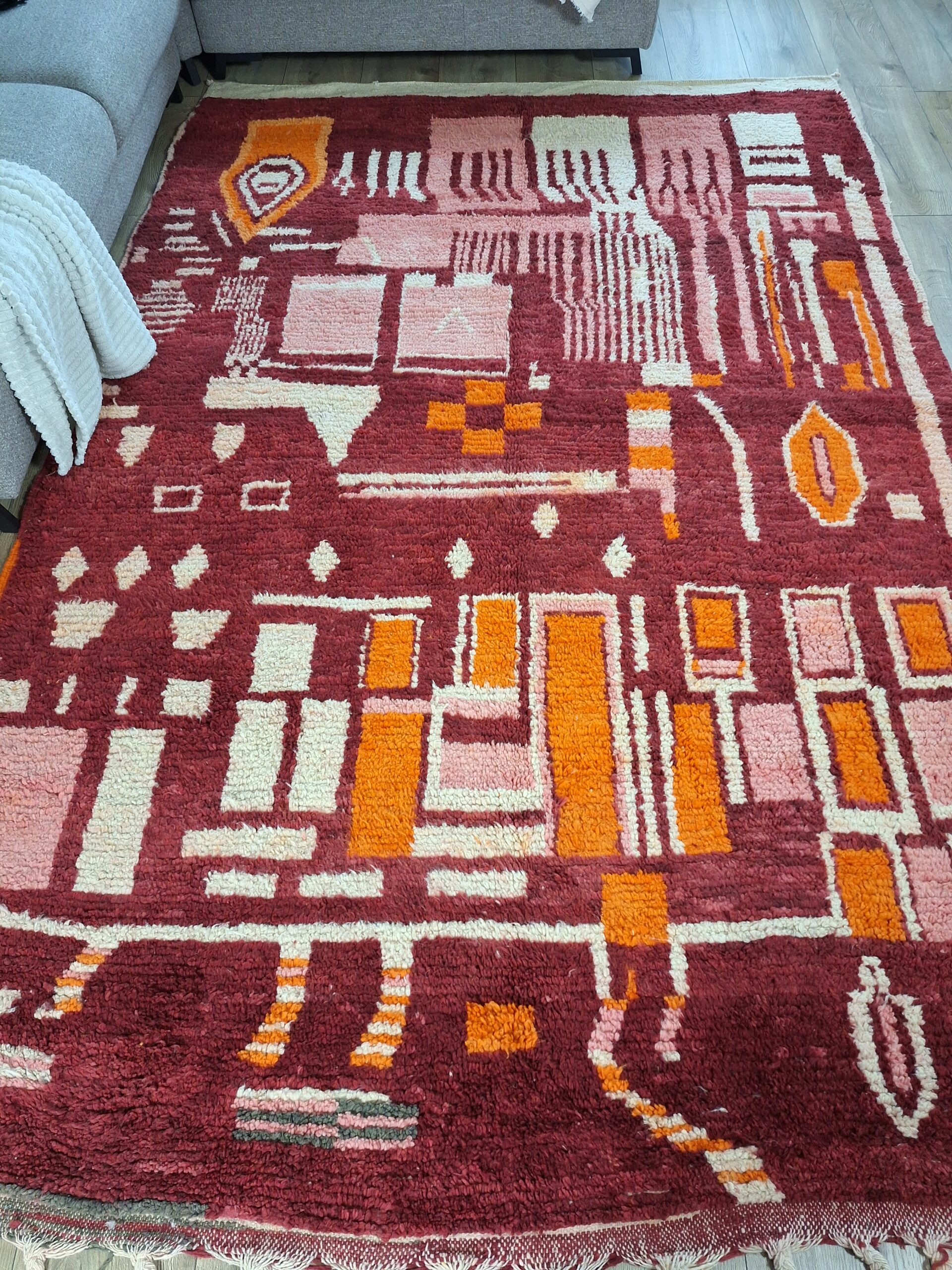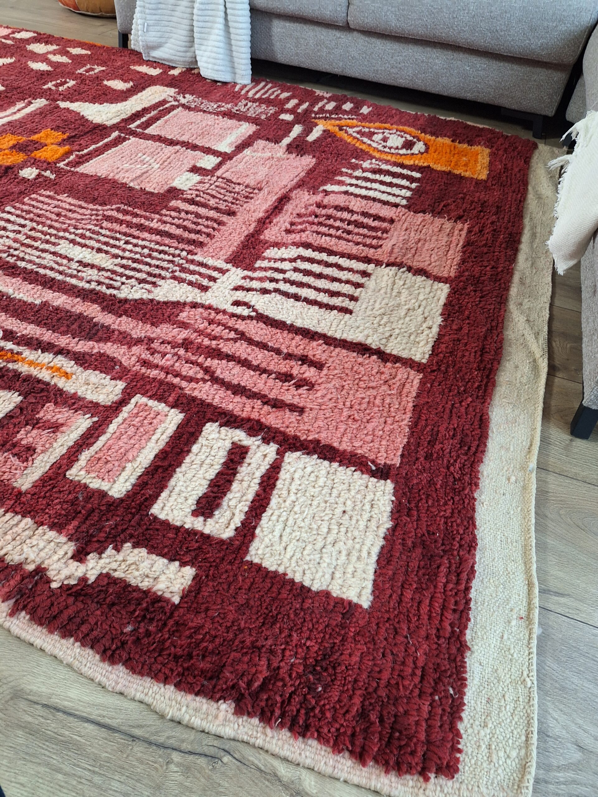 Elk stuk wordt in Marokko zorgvuldig met de hand geknoopt door ervaren vakvrouwen, met gebruik van niets anders dan puur, hoogwaardige wol en creativiteit.