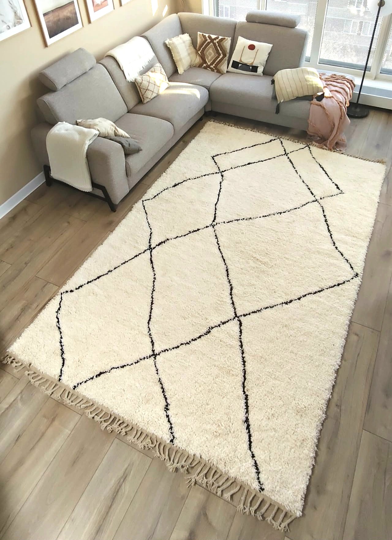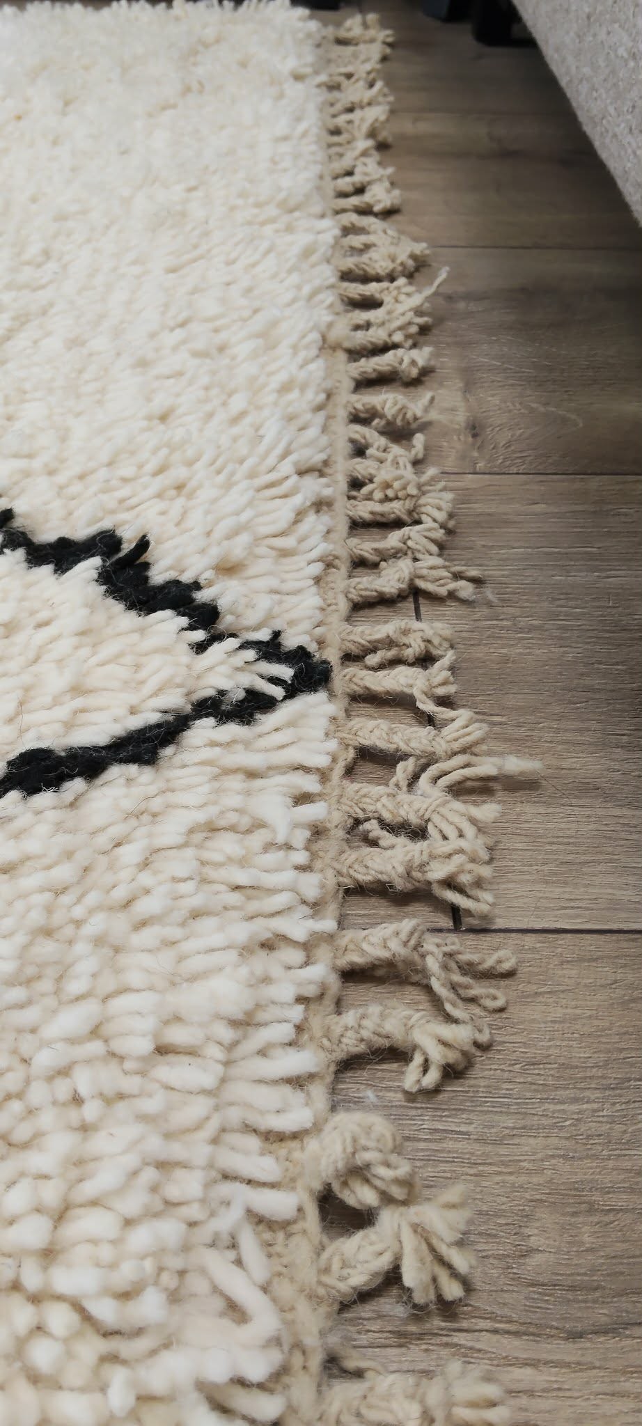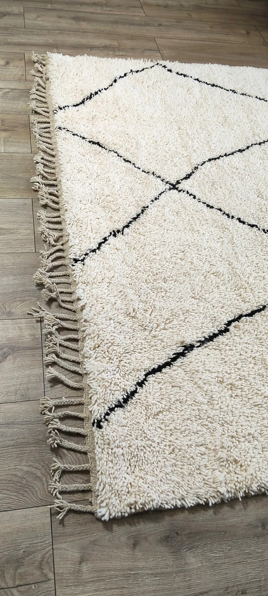 Elk kleed is een cultureel kunstwerk, gemaakt van 100% natuurlijke schapenwol – zacht, sterk en volledig duurzaam. Met zijn eigentijdse tekening geeft dit vloerkleed een frisse blik op het klassieke Berberdesign. Het patroon en de vormen brengen harmonie en zorgen ervoor dat dit tapijt onbewust direct de aandacht trekt van iedere bezoeker.