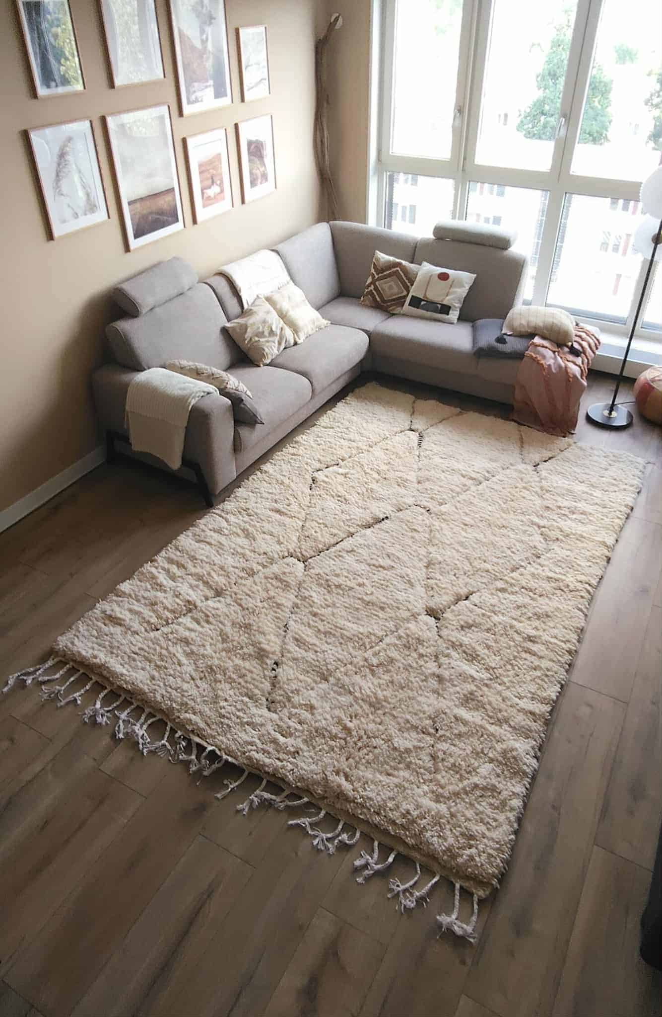 Elk kleed is een cultureel kunstwerk, gemaakt van 100% natuurlijke schapenwol – zacht, sterk en volledig duurzaam. Met zijn eigentijdse tekening geeft dit vloerkleed een frisse blik op het klassieke Berberdesign. Het patroon en de vormen brengen harmonie en zorgen ervoor dat dit tapijt onbewust direct de aandacht trekt van iedere bezoeker.